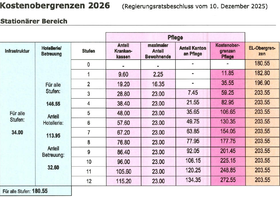 Die höchstmöglich anrechenbaren Heimkosten, die bei der Berechnung des